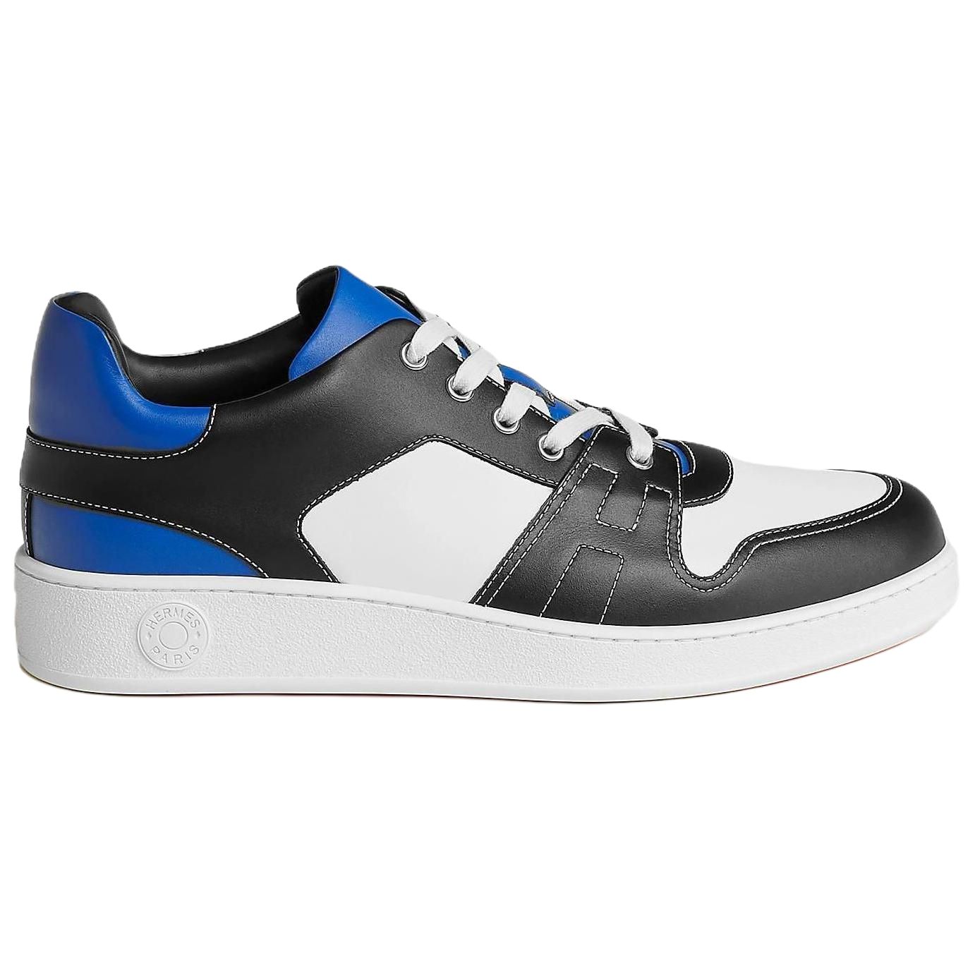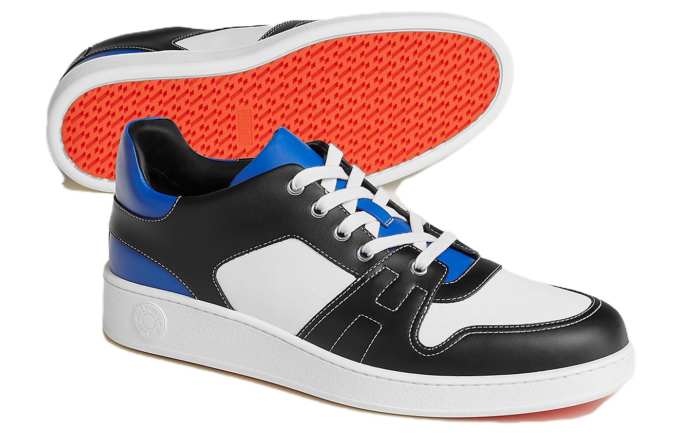 Кроссовки мужские HERMES H222837Z H04 черно-белые с синими акцентами